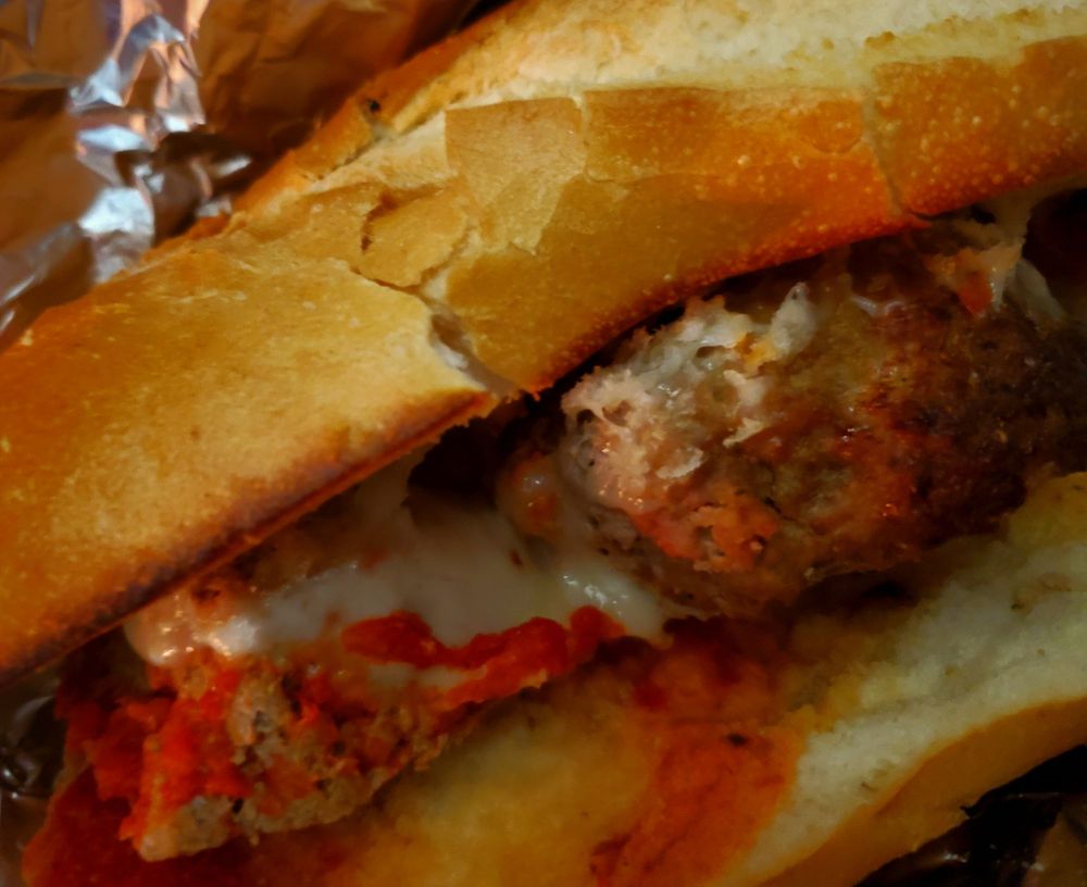 With rice, Chopped meat, melted mozzarella and marinara sauce